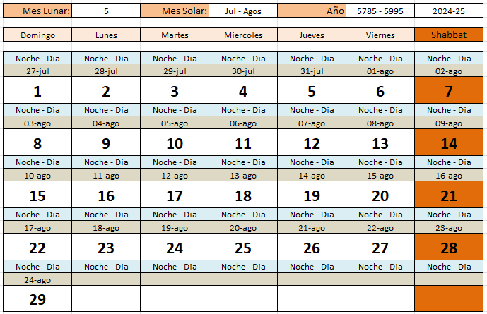 Aqui les dejo el calendario hebreo para este mes 5°/25 en curso