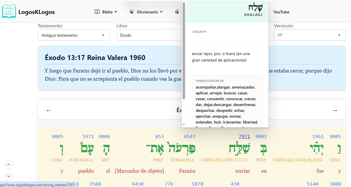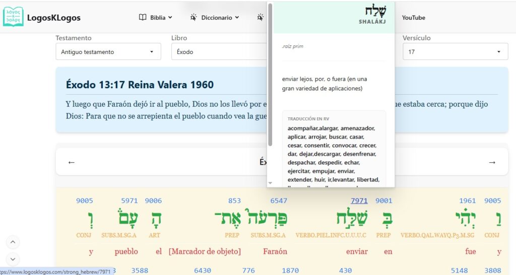 En la foto puede ver que esta palabra indica enviar lejos, también enviar a una persona, o sea en contexto podemos decir: Enviados para ser transformados por Dios para entrar a la tierra prometida. Esto queda demostrado en los versículos siguientes donde vemos el cuidado de Dios, su protección y dejando evidencias a su alrededor.