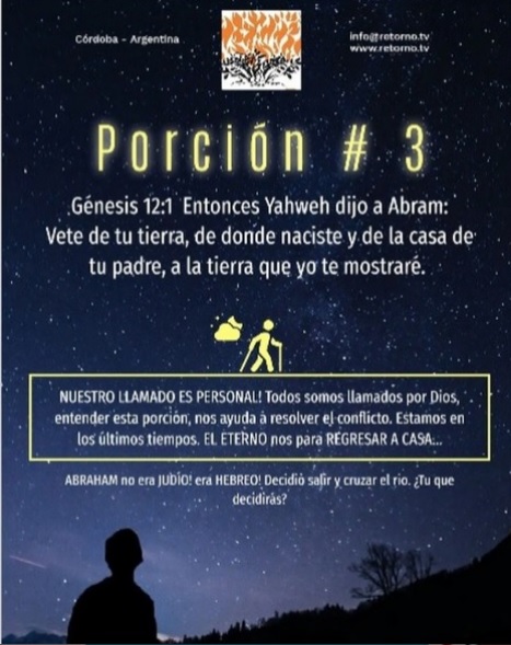 Lo que considero más importante de esta porción es que YAHWEH le dice a Abraham que deje su tierra y su parentela hacia la tierra prometida. Nos muestra un llamado personal, y que a la vez como Abraham todos somos llamados por Dios a algo especial. este es el conflicto religioso que todos pasamos en la vida y hay que estar a la altura de decidir dejar todo rastro de Religión y seguir al Eterno de regreso para su casa, o sea hacer su voluntad, sin agregar ni quitar nada.